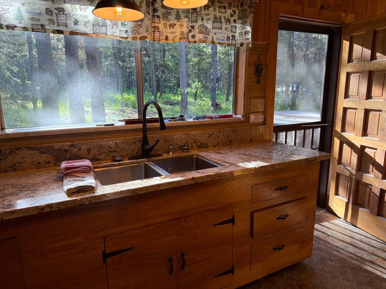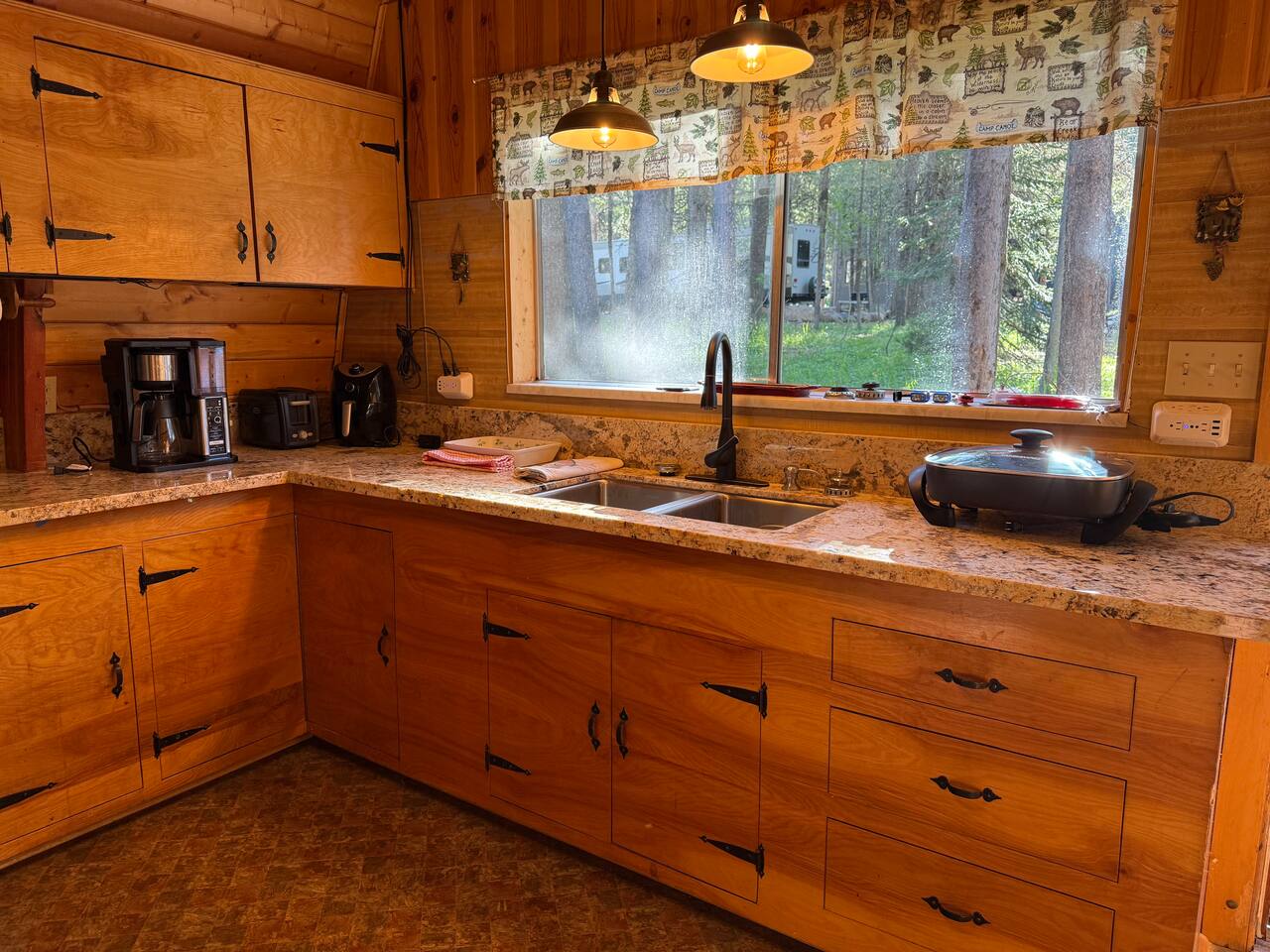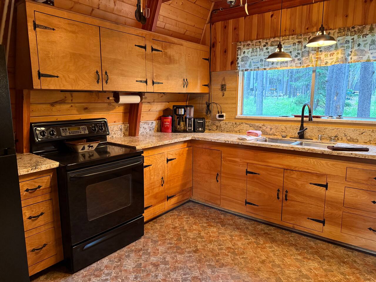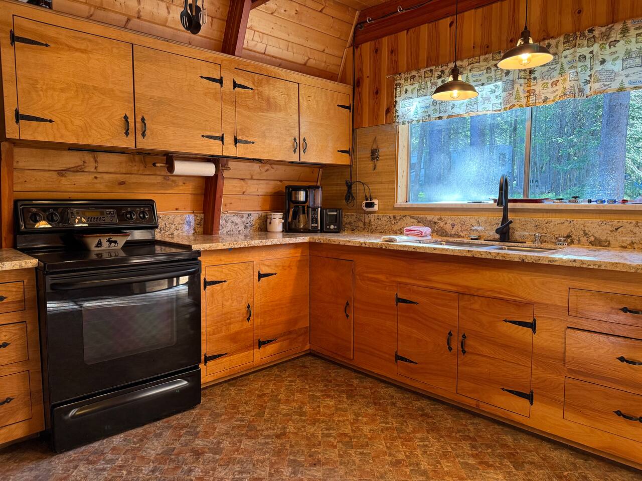 Step inside and you’ll find a snug living area perfect for relaxing after a day of exploring. The main floor features a well-equipped kitchen, dining area, and comfy seating—ideal for sharing meals, games, or a cup of cocoa by the fire. Large windows bring in natural light and forest views, making you feel connected to the great outdoors even while indoors. Upstairs, you'll find two bedrooms. One offers a queen bed and a quiet place to rest beneath the eaves. The second bedroom is great for families or groups, featuring two bunk beds—each with a queen on the bottom and a twin on top—providing flexible and comfortable sleeping arrangements for kids or adults. Please note: The staircase to the upstairs bedrooms is steep and best suited for able-bodied guests. Cedar Chalet is the perfect place to unplug and recharge. Whether you're planning a family getaway, a romantic retreat, or a friends' weekend in the woods, this charming cabin delivers the peaceful “cabin in the woods” vibe you're looking for.