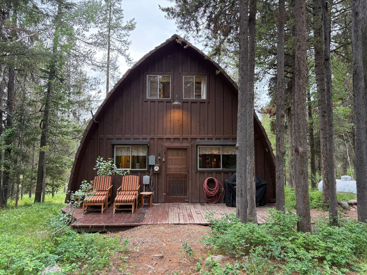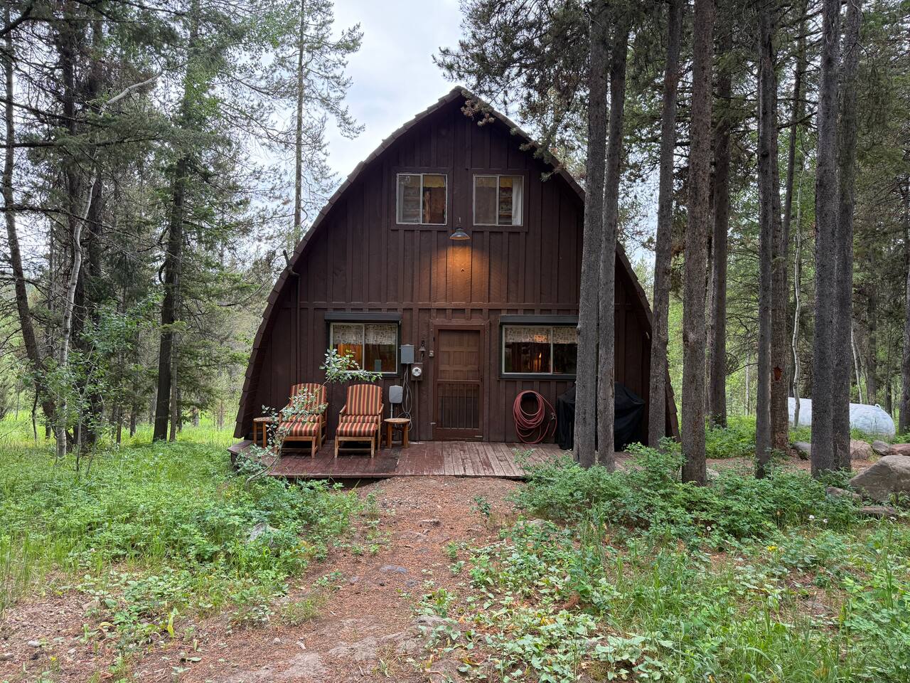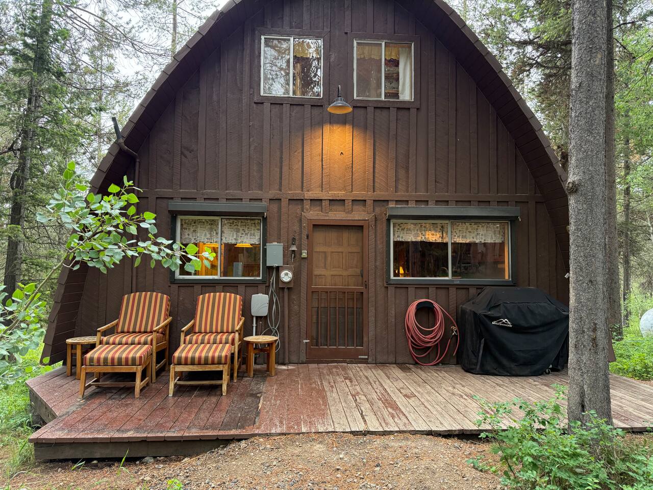 Tucked beneath the towering pines of Island Park, Cedar Chalet is your classic cozy cabin in the woods—rustic, warm, and full of charm. This A-frame-style retreat is perfect for those seeking a peaceful mountain escape. Inside, you’ll find woodsy details, a snug living space, and just the right touch of wilderness flair.