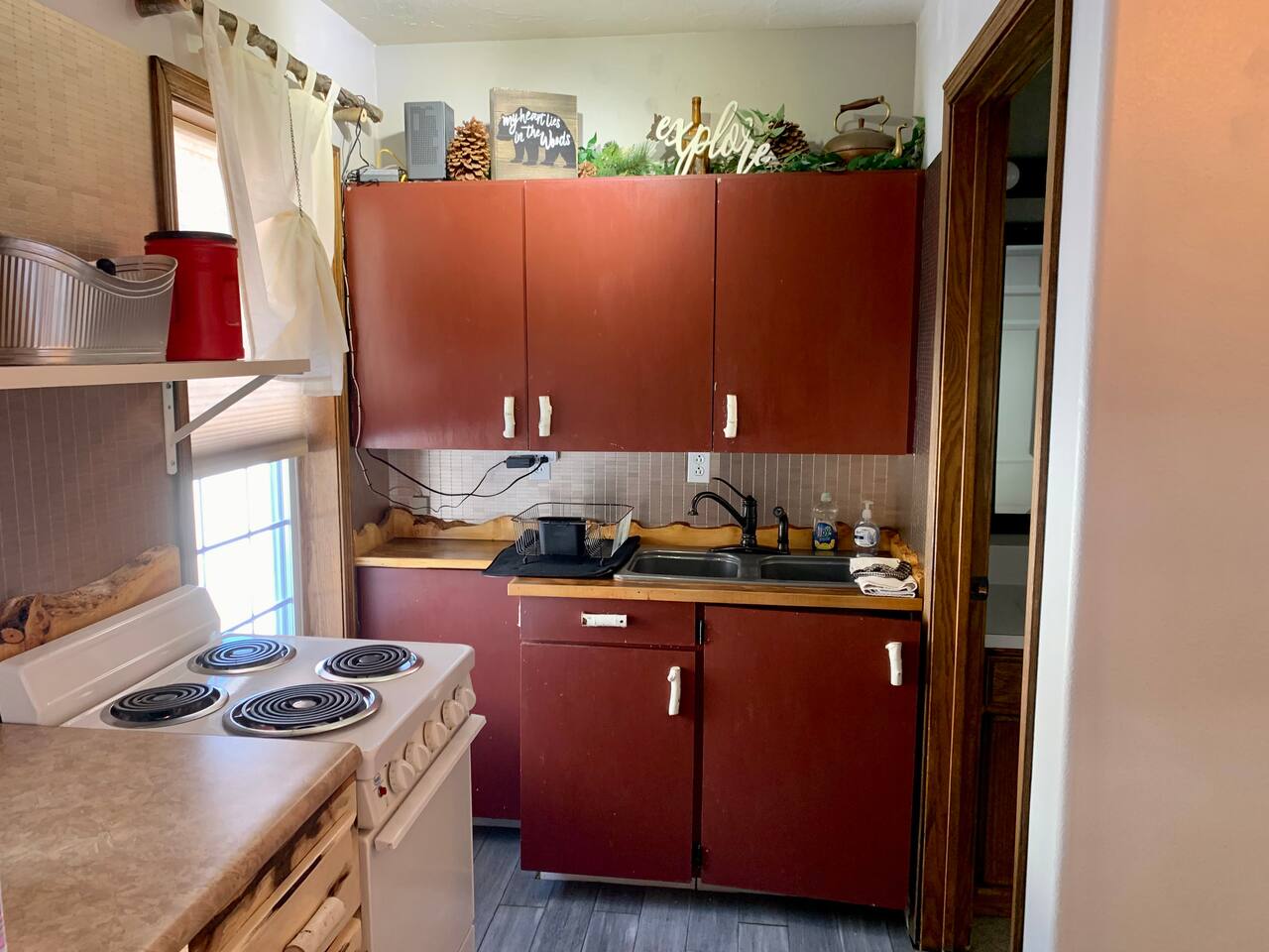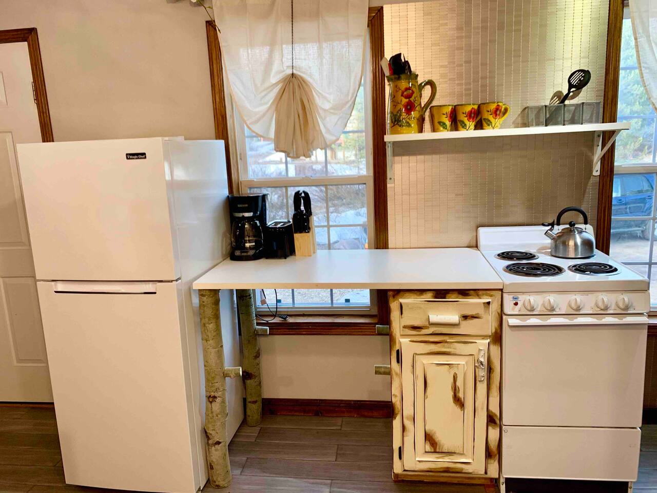 Private, cozy, adorable cottage. Perfect for a couple!! The cottage is an entire home that has its own driveway and a private entrance. Entrance has three steps. It has one king bed only. This cottage has had new floors installed in the living area. This cottage is a great deal for a family on a budget. You can view the creek right from the back deck! Kitchen is fully stocked with pots, pans, dishes, eating utensils, stove, full size fridge and kitchen sink!