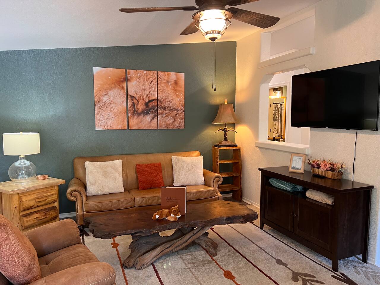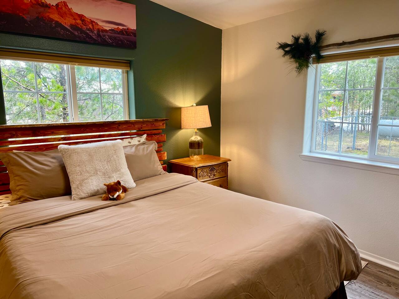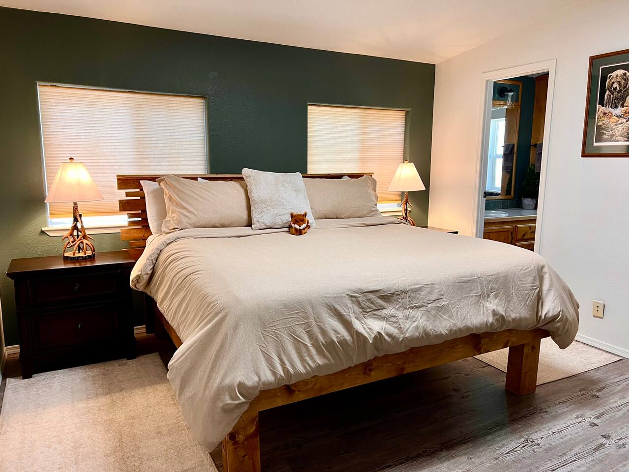 Welcome to Fox Grove Cabin! This home is the PERFECT retreat for couples or small family that are traveling with pets! This home comes with fenced in yard AND dog door. Are you bringing your dog with you on vacation, but you are worried about leaving them at home all day? Look no further! Fox Grove Cabin is dog friendly! This home is designed with couples and pets in mind! Two bedrooms, each with access to a full bathroom. One bedroom has a king bed and the other has a queen bed.