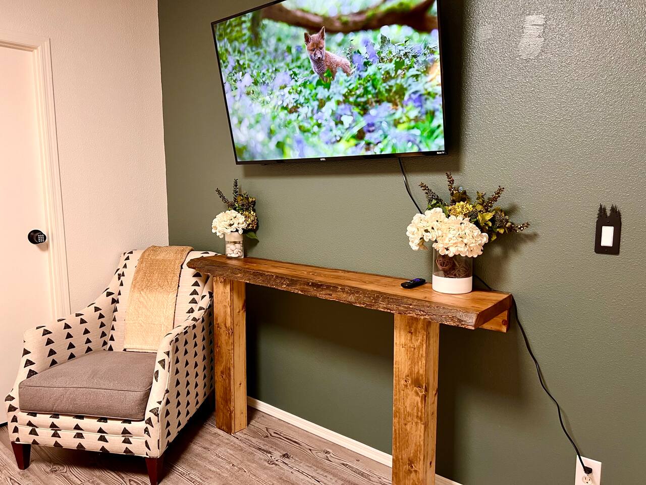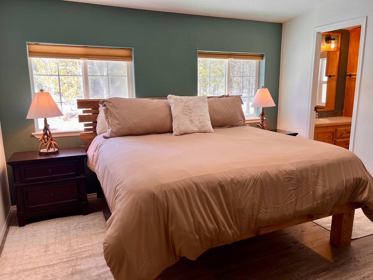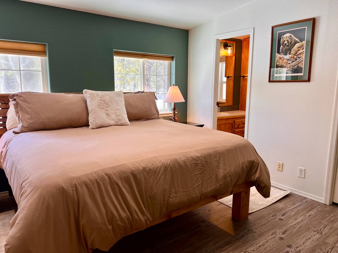Welcome to Fox Grove Cabin! This home is the PERFECT retreat for couples or small family that are traveling with pets! This home comes with fenced in yard AND dog door. Are you bringing your dog with you on vacation, but you are worried about leaving them at home all day? Look no further! Fox Grove Cabin is dog friendly! This home is designed with couples and pets in mind! Two bedrooms, each with access to a full bathroom. One bedroom has a king bed and the other has a queen bed.