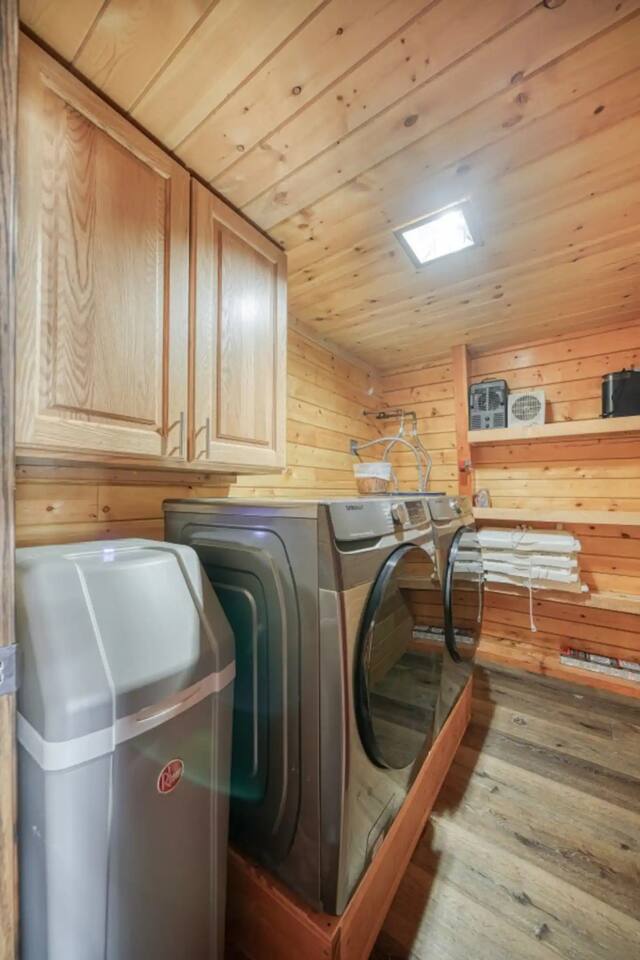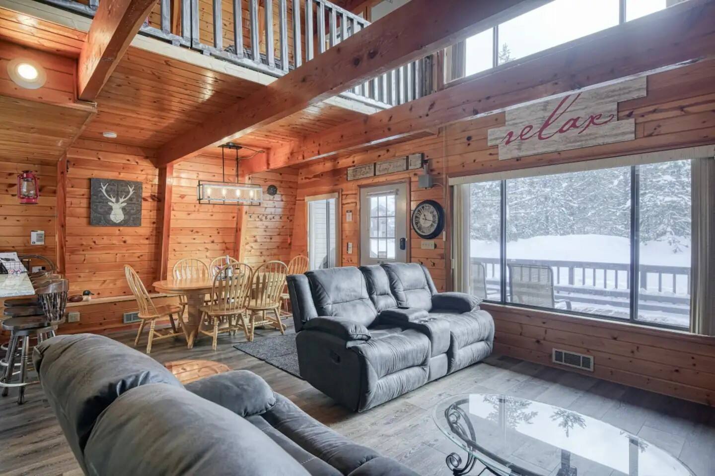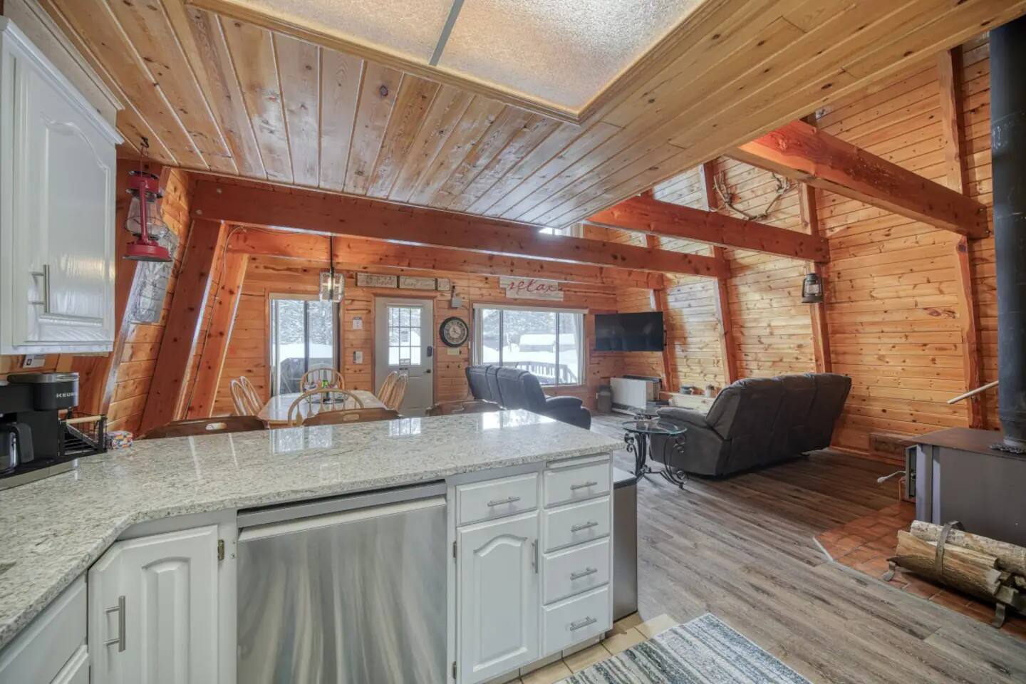 Downstairs/Main Floor: - Bedroom with Queen bed - Bathroom with tub/shower. -Kitchen, dining and living area. Upstairs: - Loft area: Two Full-sized beds, arcade machine. - Bedroom 1: Full size bed, TV - Bedroom 2: Queen size bed, TV - Half bathroom. Step into the ultimate escape at Lazy B Lodge, where the charm of a rustic cabin meets all the comforts of home. Nestled among towering trees and lush meadow grass, this cozy getaway offers the perfect setting for relaxation, adventure, and making lasting memories. **Highlights:** - **Cozy Winter Vibes:** Snuggle up by the wood-burning stove and let the crackling fire set the perfect ambiance for chilly evenings. - **Summer Fun:** Gather around the firepit under the stars for s’mores, laughter, and stories, or fire up the BBQ on the deck and enjoy a delicious meal outdoors. - **Room to Roam:** The cabin is set on a generous property surrounded by nature’s beauty, with large trees providing shade and privacy, and meadow grass offering peaceful views. - **Boat Lovers’ Paradise:** For those who love the water, enjoy easy access to the community boat ramp! A special tag in the cabin gives you access to launch your boat at the nearby boat dock, so you can spend your days out on the water. **Inside the Lodge:** - **Spacious Dining for All:** The large dining table is perfect for family dinners, board games, and laughter-filled meals. - **Comfy Sleeping Space:** With 5 beds and 1.5 baths, there’s plenty of space for everyone to unwind. Whether it’s a cozy nap or a restful night’s sleep, you'll feel right at home. - **Fully Equipped Kitchen:** The kitchen is a dream for any home cook, with tons of counter space and a wide array of utensils to help you whip up a gourmet meal. Whether it’s pancakes in the morning or a hearty stew at night, you’ve got everything you need. - **Convenience at Your Fingertips:** Don’t worry about laundry – the cabin is equipped with a washer and dryer, making it easy to keep your adventure clothes fresh. At Lazy B Lodge, you’ll experience the perfect blend of cozy cabin vibes, water adventures, and modern comfort. Whether you're cozying up in winter, enjoying a summer BBQ, launching your boat into the water, or simply soaking in the beauty of the woods, this cabin is your home away from home. Come for the relaxation, stay for the memories!