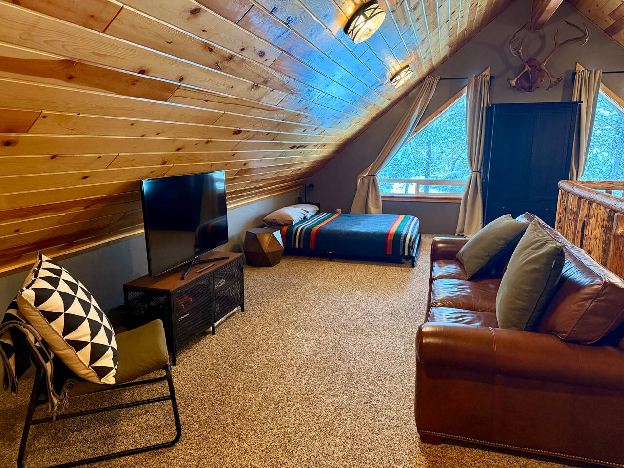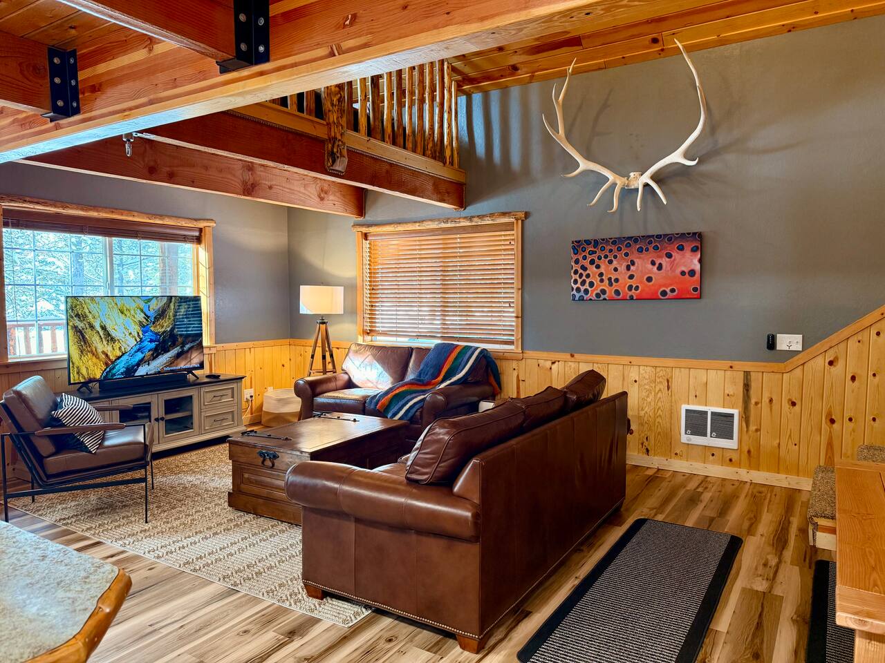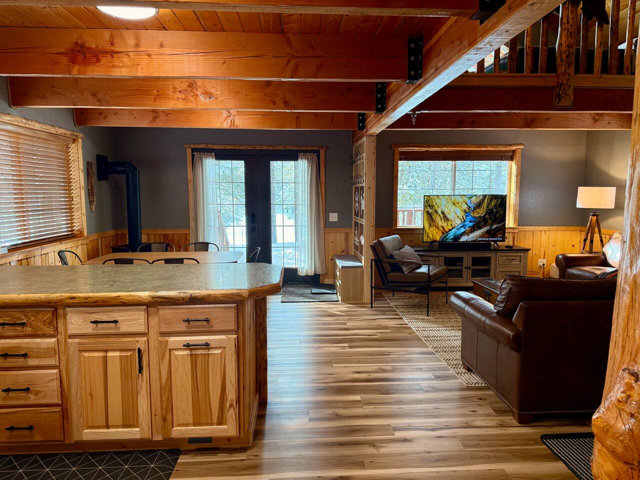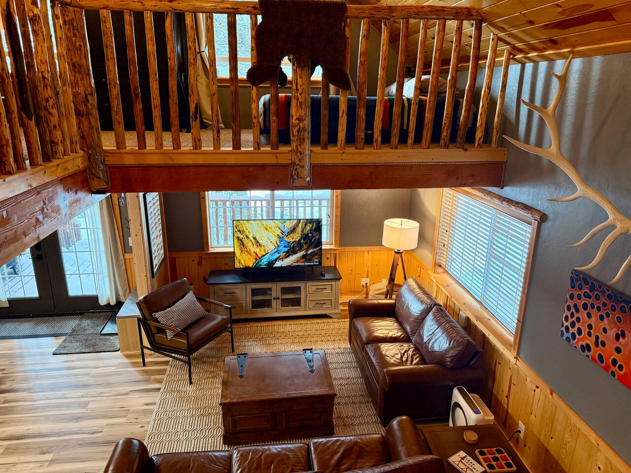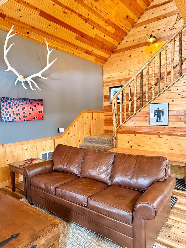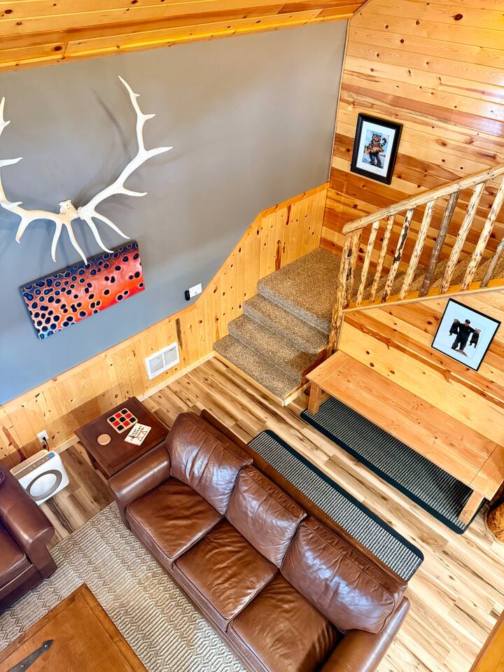 Welcome to Island Park Ranger’s Retreat, a cozy and inviting cabin nestled in the woods, perfect for a family getaway. This charming retreat features two bedrooms, each with a queen bed for a restful night’s sleep. The master bedroom is conveniently located on the main floor, along with a well-equipped kitchen, a full bathroom, and a warm, open living area. Upstairs, you’ll find a second private bedroom with a queen bed. The open loft area provides additional sleeping space with two queen beds and an optional pullout couch, making it ideal for larger families or groups. Thoughtful woodwork details throughout the cabin create a rustic yet cozy atmosphere, offering the perfect place to unwind and make lasting memories. Whether you're here for adventure or relaxation, Island Park Ranger’s Retreat is the perfect home away from home.