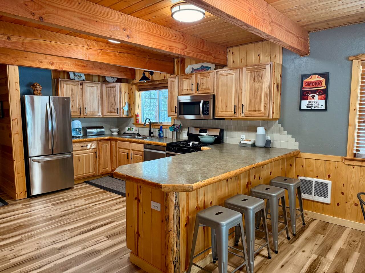 Guests have full access to the entire cabin, including all bedrooms, bathrooms, and living spaces. The spacious backyard is also part of the rental, offering a perfect spot to unwind and enjoy nature. Gather around the firepit with family and friends, roast marshmallows, and share stories under the stars. With outdoor seating and plenty of space to relax, the backyard is an ideal place to make lasting memories in the heart of the woods.