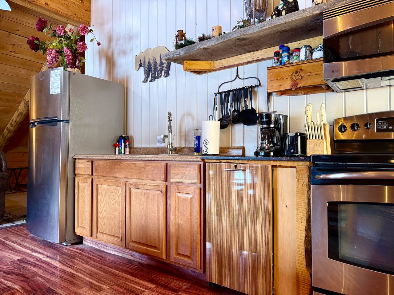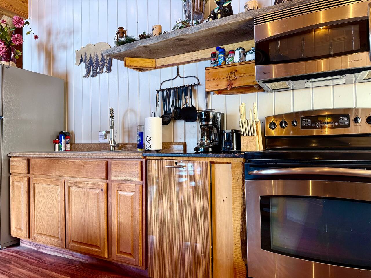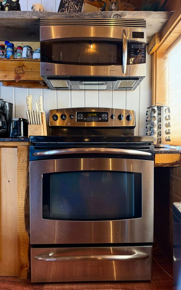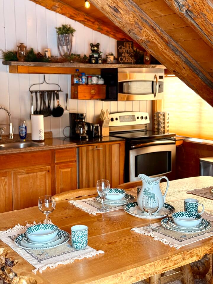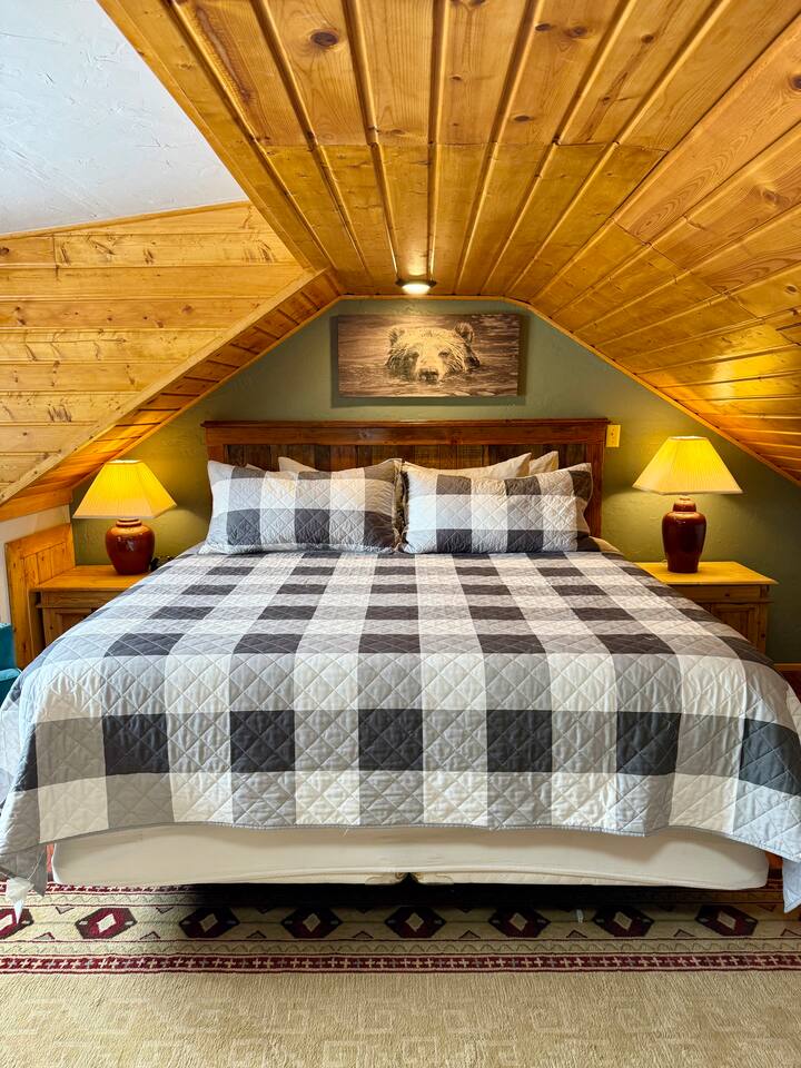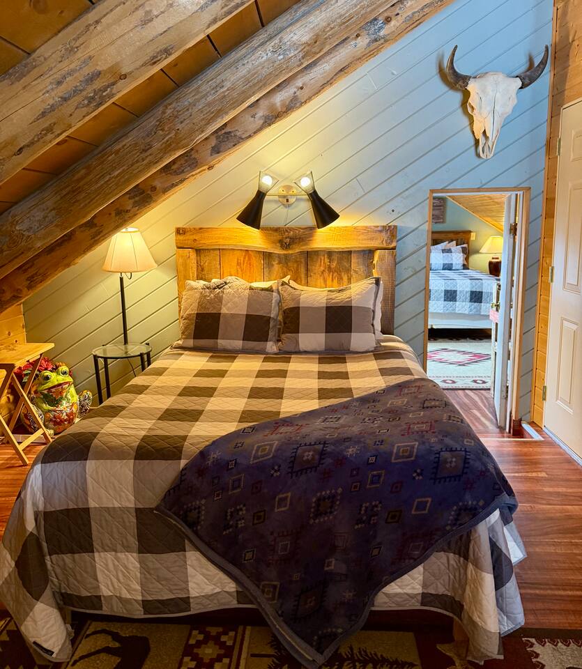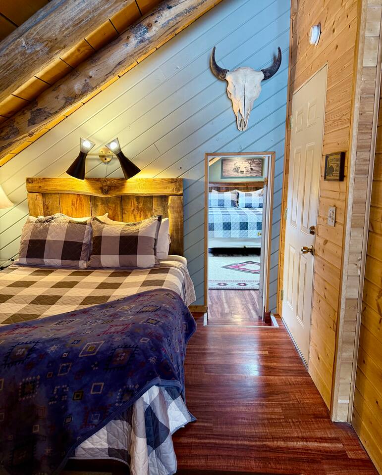 Shotgun Ridge is a cozy, private upstairs apartment with a separate entrance, offering the perfect stay for couples, families, or groups of friends. While it’s located on the Shotgun Bar property, guests rarely mention noise, allowing you to enjoy a peaceful and comfortable stay. The newly remodeled master bedroom features a spacious king bed, while the open living area includes a queen bed and a queen pullout couch, providing plenty of sleeping space. The fully stocked kitchen has everything you need to cook meals, including a stove, full-size fridge, sink, pots, pans, dishes, and utensils—great for travelers looking to save on dining out. This apartment is a fantastic deal for those wanting comfort, convenience, and adventure without breaking the budget.