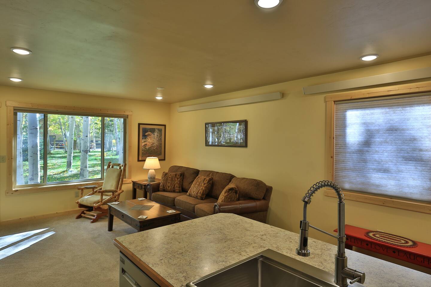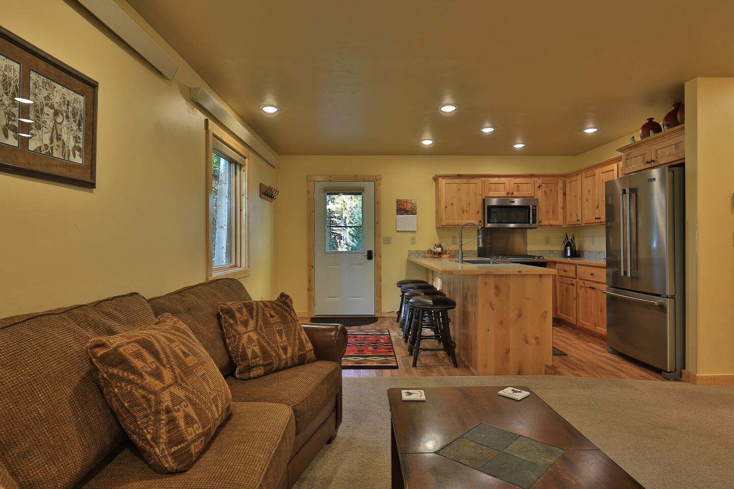Nestled among aspens just 10 minutes from Yellowstone’s west entrance, this two-bedroom cabin offers a peaceful retreat with room for couples, families, and adventurers. Relax, recharge, and experience the park by day, stars and campfire by night.